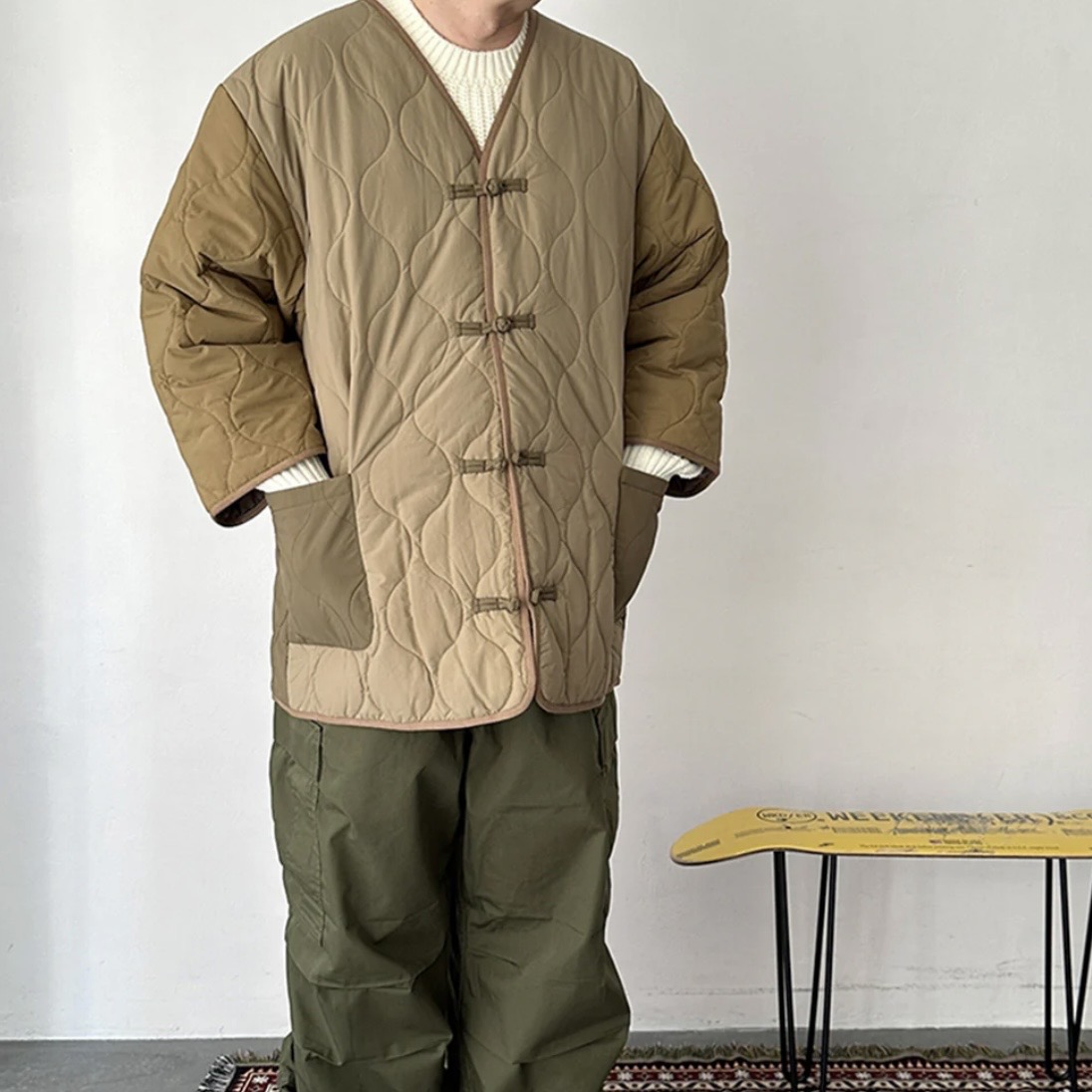 米軍M-65フィッシュテールパーカーのライナーを模したヒョウタン型キルティングを施した軽量なDAN-TENです。