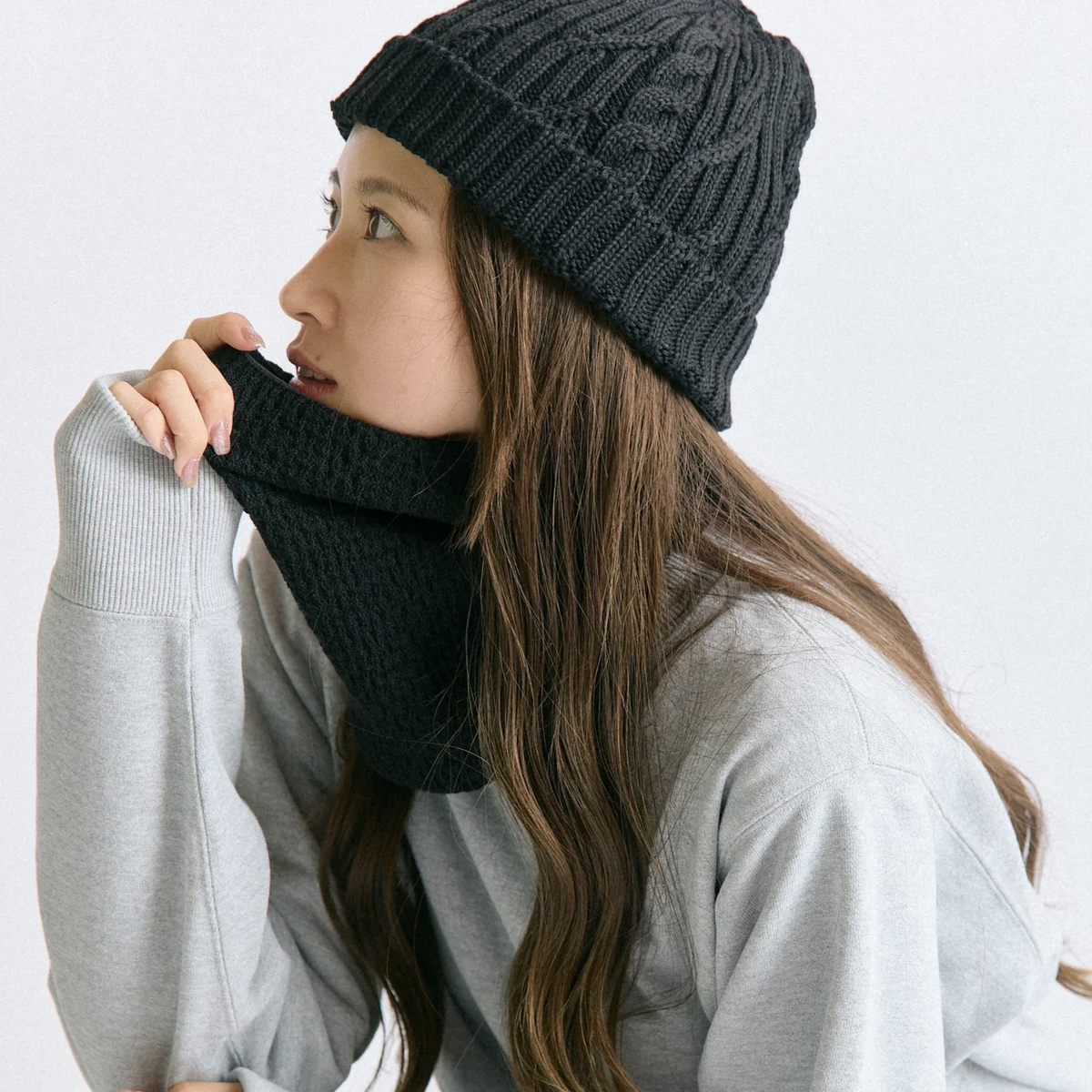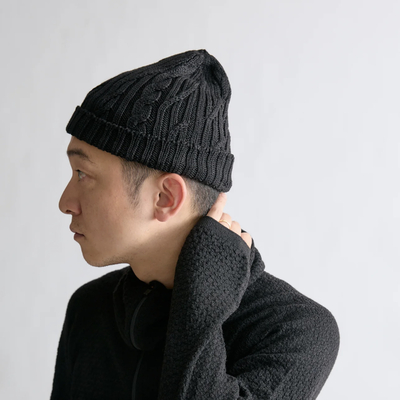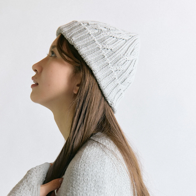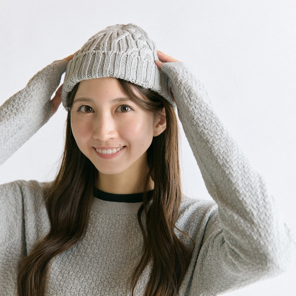 エクストラファインメリノウール70%と、再生ポリエステル30%を使用しており、機能性と環境への配慮を両立させているニットキャップです。