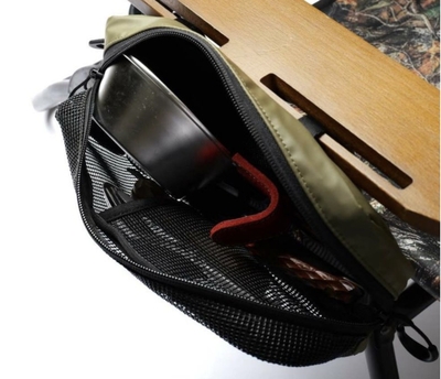 背面にはループが付いており、ローバーチェアの肘掛けや自転車やバイクにも取り付けできる仕様になってます。