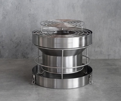 着火、消火、再着火が本体だけで可能な、ステンレス製七輪