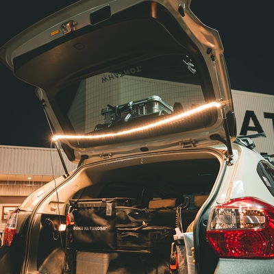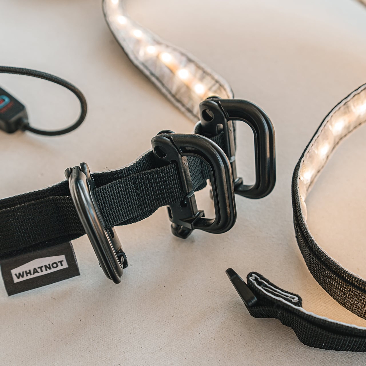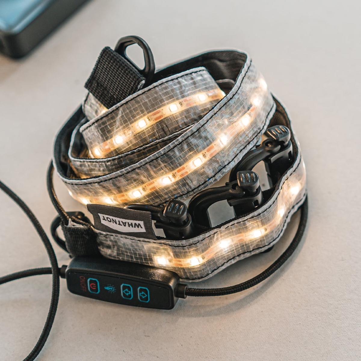 WHATNOTが考案した、ウェビングテープをベースにしたタクティカルなLED照明。
