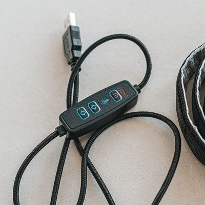 摩擦に強いロープタイプのケーブルを採用し、コード部分のコントローラーで光量を10段階に調整できます。