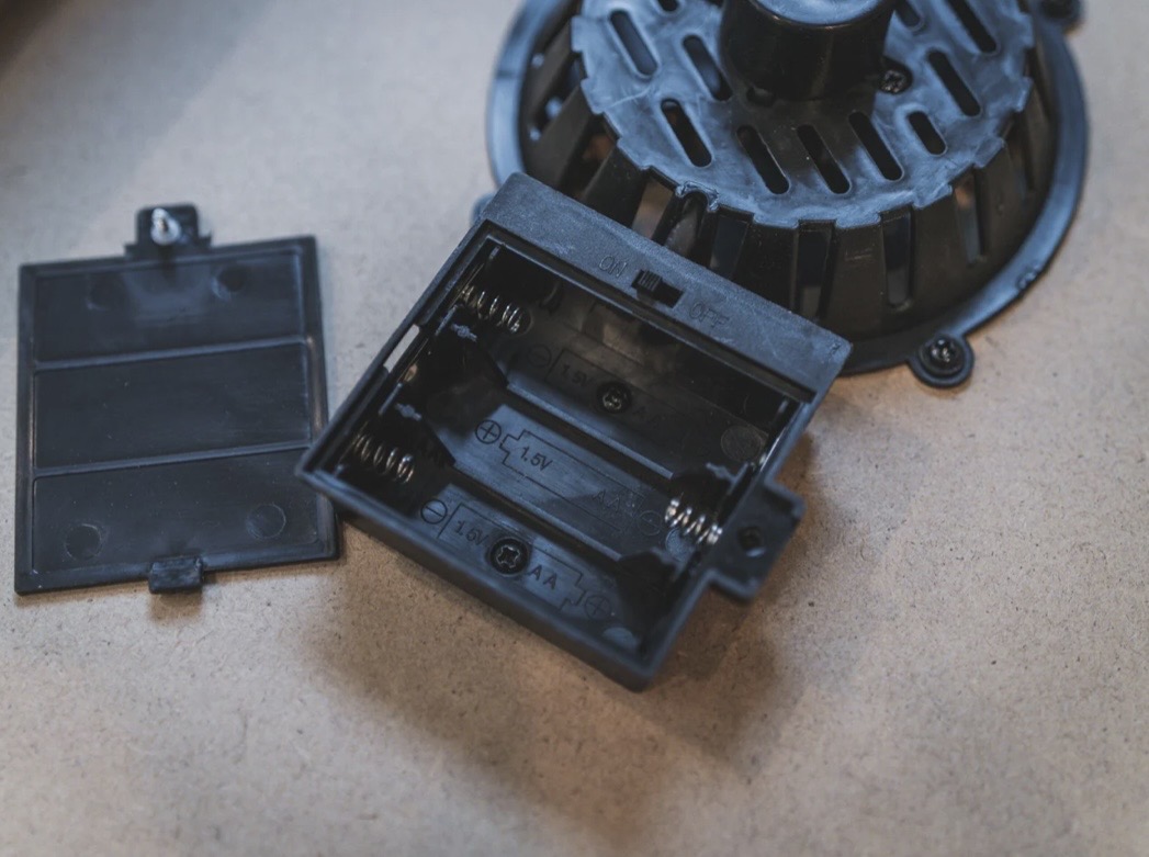 単三電池(別売)×3本を入れることにより風の力でパックが浮きます。