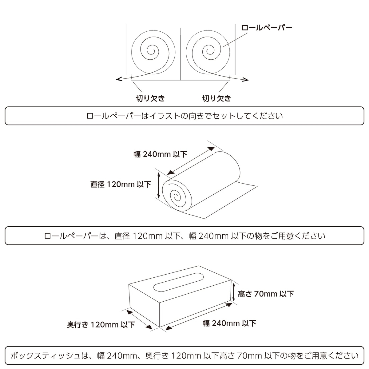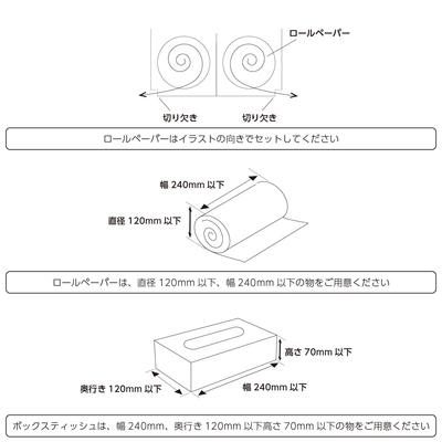 ペーパー類の取り出し口は左右対称に設計しているので、